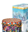 - Жестяные. Тубы, прямоугольные коробки, колокольчики станут отличным дополнением к любому новогоднему декору и подарят ощущение праздника и радости. Они могут быть использованы и для других целей, например, для хранения сладостей или мелочей после того, как подарок будет открыт.